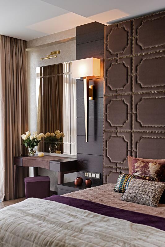В интерьере появились подчеркивающе графичные встроенные потолочные светильники от Prolight с интенсивным свечением и всевозможные скрытые подсветки-светодиоды теплого приглушенного цвета по периметру потолочных ниш. Акцентными светильниками стали большая люстра от Baga / Patrizia Gargannti над обеденным столом, настенные бра установленные на прикроватных панелях спальни. Установка диммеров позволила разнообразить сценарную линию системы освещения в целом и в отдельно взятых зонах.