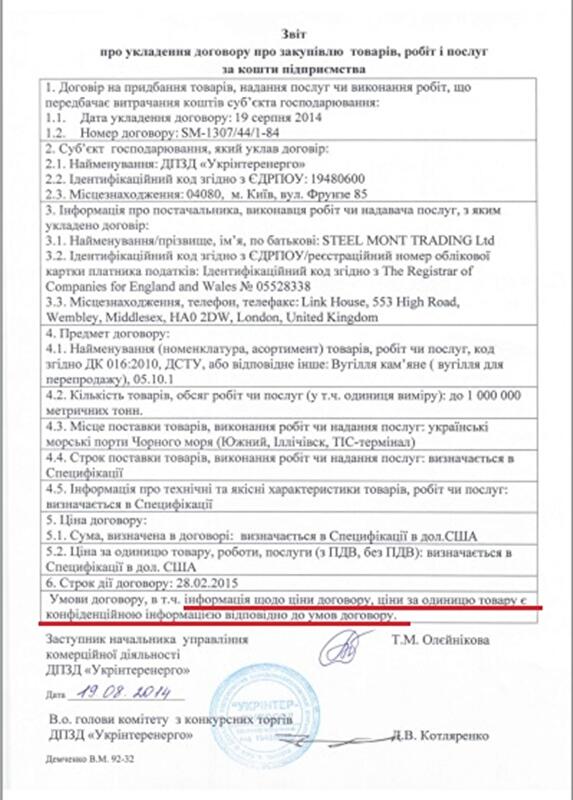 Заказано до 1 млн метрических тонн угля. Договор подписан 19 августа этого года. Поставщиком стала лондонская компания «Steel Mont Trading Ltd».