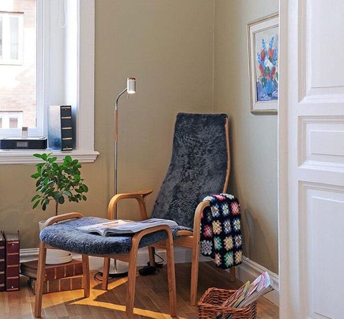 Идеально подойдет часть спальни или, что логично, часть той комнаты, где расположилась домашняя библиотека. В спальне кресло или мягкий стул, как и торшер, вообще будут нелишними, и не только для увлеченного чтения. На что стоит обратить внимание: среди тысячи кресел лучше выбирать то, что оснащено подлокотниками, они точно пригодятся. Не помешает идущая в комплекте табуретка или пуф , они заменят журнальный столик и станут удобной подставкой под ноги. Что же касается обивки, вариантов два: хороший текстиль и кожа. Кожа прослужит долго при постоянной эксплуатации, а вот тканевую обивку лучше прикрыть чехлом, чтобы уберечь от изнашивания.