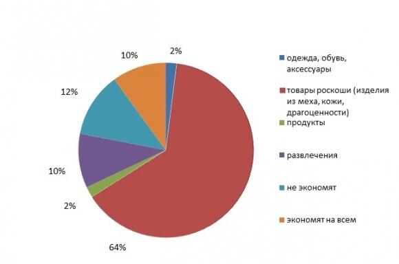 Большая часть опрошенных (64%), в этом году откажется от покупок товаров в категории роскоши (изделия из меха, кожи, драгоценности). Среди категорий, на которых все же будут экономить украинцы, — развлечения (10%), продукты (2%), одежда и обувь (2%). Тотальной экономии дается лишь одно объяснение — стремительное падение покупательской способности украинцев . «Платежеспособный спрос будет расти в том случае, когда повысится продуктивность труда. Говоря научным языком, это произойдет при повышении ВВП на душу населения. То есть, когда будет вырабатываться больше товаров, покупать их тоже будут больше», — прокомментировал «Вестям» ситуацию профессор бизнеса Киевской школы экономики Михайло Колиснык.