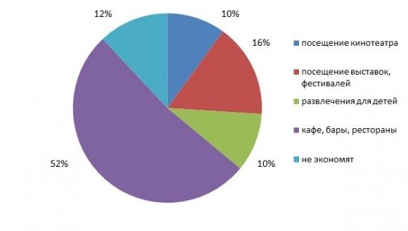 Опрос также показал, что больше всего украинцы решили сэкономить на досуге: 52% респондентов призналось, что меньше будет посещать кафе, бары, рестораны, 16% — откажется от выставок и фестивалей, 10% — будет экономить на посещении кинотеатров, и такое же количество опрошенных урежет свои расходы на развлечения для детей.