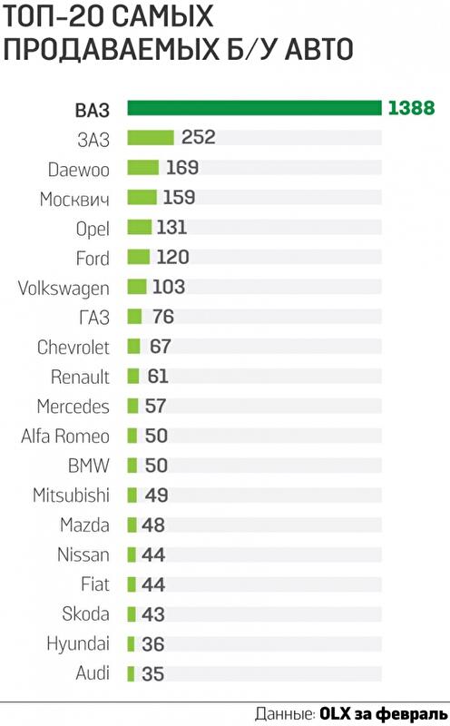 «Таким образом, в общем объеме февральского рынка легковых авто в 3 796 ед. доля б/у автомобилей достигла 23% (в феврале прошлого года — 3%)», — отметили эксперт «Укравтопрома» Георгий Овсянников.