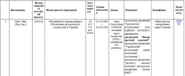 По словам Марьяна Заблоцкого, например, "Центр противодействия коррупции" является одним из реципиентов гранта на 18, 6 млн долларов официальным бенефициаром которого является МИД.