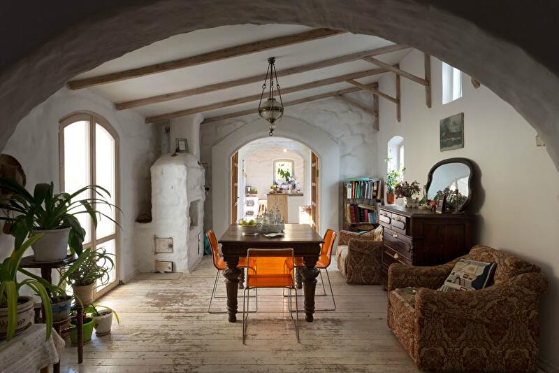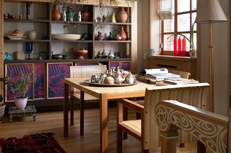 А вот с декором стоит быть очень осторожным. Обилие вышитых рушников, скатертей, салфеток, оберегов, занавесок, орнамента на стенах и не только может перегрузить интерьер и сделать его неинтересным и совершенно несовременным. Лучше отдать предпочтение одному-двум предметам в комнате – старинному рушнику и соломенному оберегу в углу, нескольким глиняным игрушках на полочке, одному, самому простому орнаменту в декоре стен, древней иконе и Библии в углу. Лучше всего использовать именно аутентичные предметы, хранящие историю вашей семьи. Тогда каждый из них действительно будет нести в себе определенную ценность и сможет придать интерьеру осмысленность и сформировать свое «лицо».