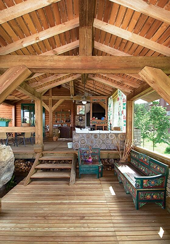 В зависимости от региона, основными материалами для строительства дома, выступало дерево или глина, камни. Современные тенденции всячески приветствуют использование натуральных материалов в интерьере, и особое место занимает как раз дерево. Деревянный пол, балки на потолке, а то и вовсе весь дом – вполне в традиционном украинском стиле. Лучше всего его сочетать с белым цветом стен, потолка, пола на кухне. Стены могут быть выбеленными, оштукатуренными, окрашенными. Хорошо еще, чтоб была видна фактура – камня, самой штукатурки.