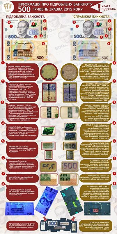 "С использованием копировальной или компьютерной техники, в частности струйных и лазерных принтеров, можно воспроизвести общий дизайн и цветовую гамму банкноты. При этом не воспроизводятся отдельные элементы защиты, в частности оптико-переменные краски", – рассказывает Валерий Строчков. Поэтому узнать фальшивку может любой украинец, если внимательнее присмотреться к купюре.