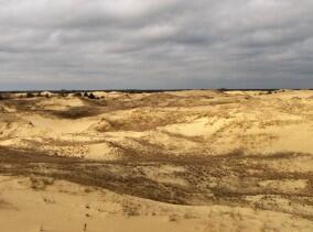 ОЛЕШКІВСЬКА ПУСТЕЛЯ . Одна з найбільших пустель Європи знаходиться саме в Україні. Олешківські піски складаються із безмежних барханів (тутешні мешканці називають їх «кучугурами») висотою близько 5 м з негустою рослинністю. Знаходяться ці піски у Цюрупінському районі (стара назва Цюрупінська – Олешки), за 30 км на схід від м. Херсон. Дніпровські піски існували здавна, але Олешківська пустеля у нинішньому своєму вигляді з’явилася порівняно нещодавно: через випасання величезних отар овець у ХІХ ст., які знищили траву, звільнилися піски, а вітрова ерозія дала їм можливість розширюватися.