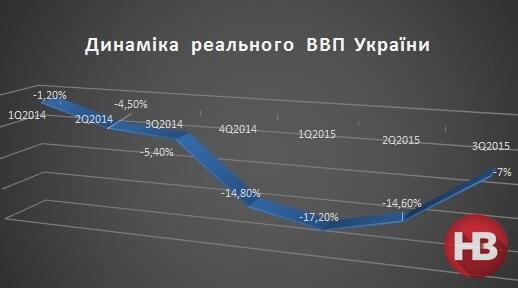 Згідно з оперативними даними Державної служби статистики, валовий внутрішній продукт (ВВП) України у третьому кварталі 2015 року виріс на 0,7%, порівняно з попереднім кварталом. Хоча реальний ВВП за результатами липня-вересня поточного року, у порівнянні з третім кварталом 2014 року, зменшився на 7%, падіння, вперше за дворічний період, сповільнилося.