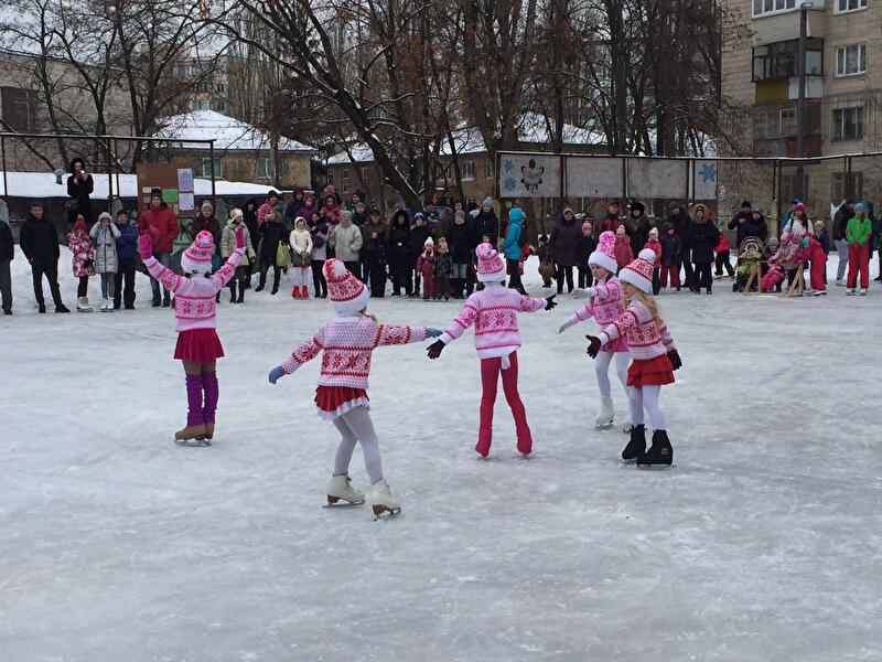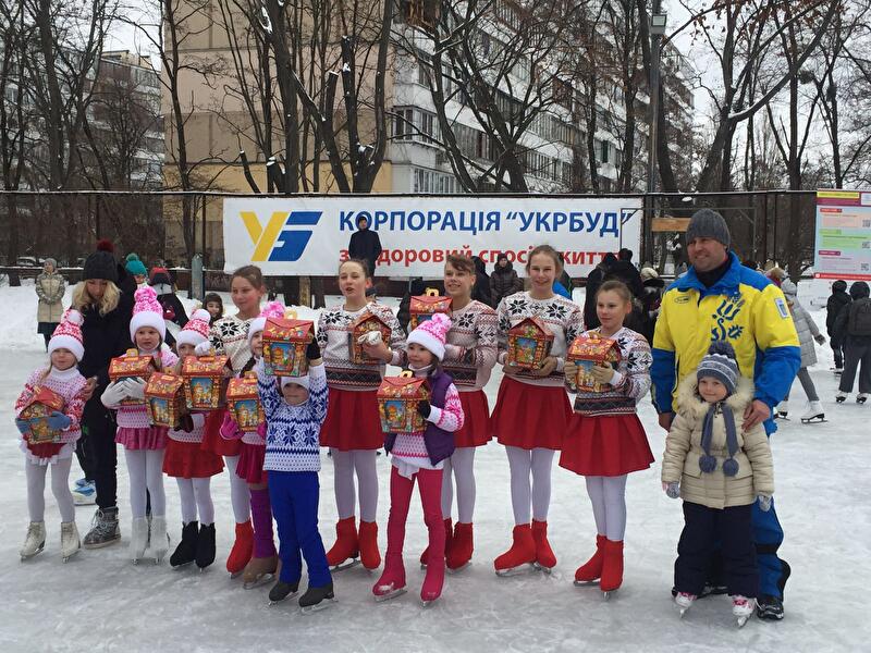 В прошлом году государственная корпорация «Укрбуд» поддержала инициативу депутата Киевсовета Олеся Маляревича и установила здесь освещение, а также предоставила форму местным хоккейным командам и коньки для бесплатного проката всем желающим. В 2017-ом строители решили продолжить эту традицию и снова взяли расходы по содержанию ледовой площадки на себя.