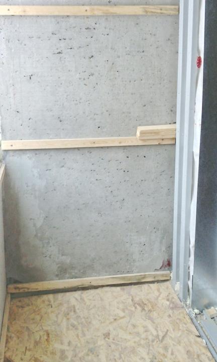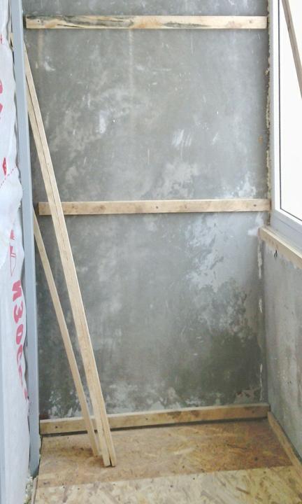 Для обрешетки стен нижняя рейка закрепляется на полу, а верхняя на потолке при помощи саморезов. Для установки средних реек натягивается шнурок, причем расстояние между ними должно быть не более 55-60 см. Рейку, на которую крепится отделочный материал, необходимо монтировать от подоконника, т.к. стык самой вагонки будет располагаться именно на этом уровне.