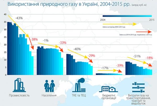 Споживання газу населенням усі роки трималося на рівні 27 млрд куб м, але в останні два роки зменшилося до 18 млрд куб м. Проте це сталося не за рахунок енергоефективних заходів, а, на жаль, через втрату територій.