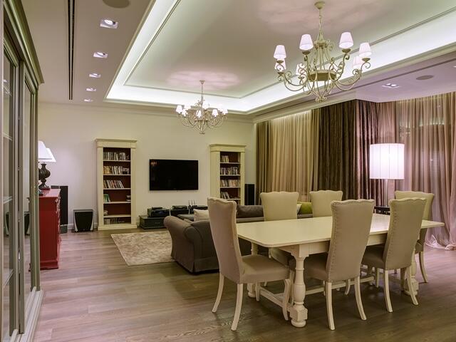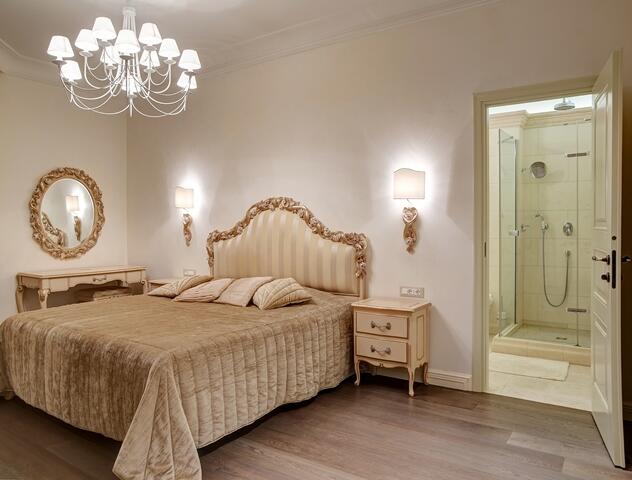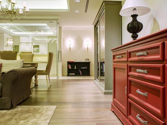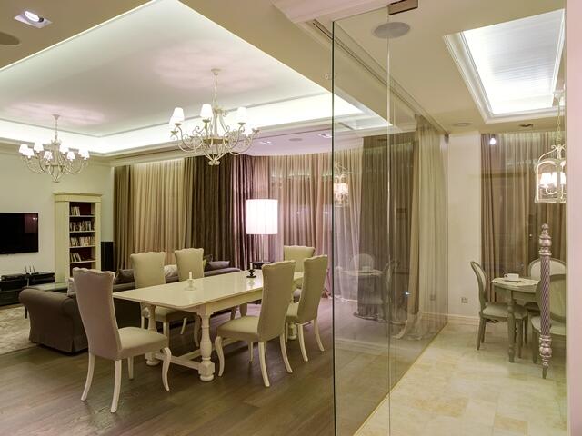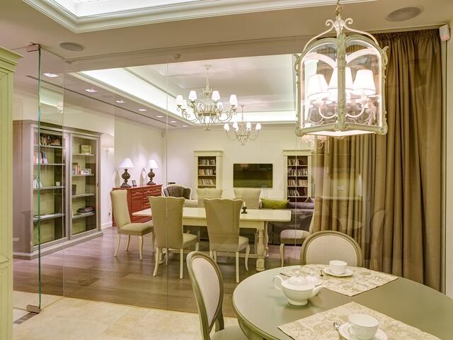 Во внутреннем оформлении гармонично подобраны все элементы, удачно расставлена мебель, что глаз не цепляется ни за один изъян. По энергетике квартира получилась очень легкой и спокойной. Настоящий аристократичный интерьер без нарочитой помпезности!