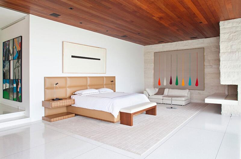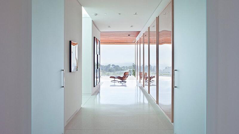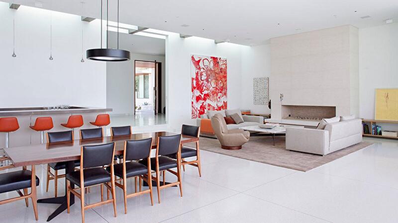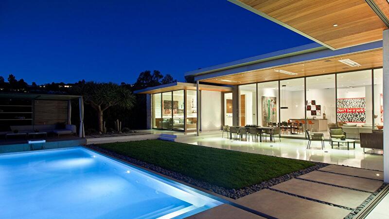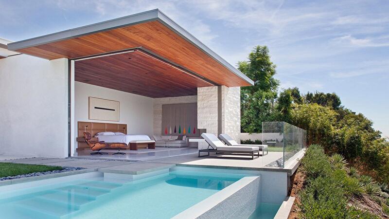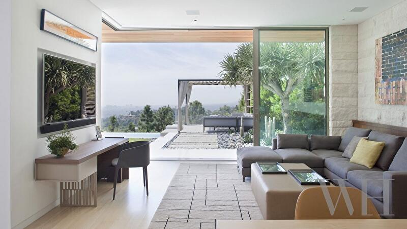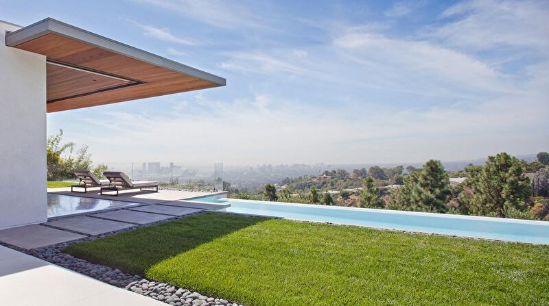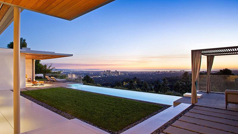Одноэтажный дом может похвастать современным интерьером и эргономикой внутреннего пространства. Как и у других домов Беверли Хиллз, у Trousdale Residence самое большое преимущество заключается в его расположении на склоне холма, с которого виден Голливуд и часть Лос-Анджелеса. Концепция дизайна интерьера построена вокруг террасы с обратной стороны — в этой части дом имеет максимально открытые стены и открытую планировку интерьера. С обратной же стороны все наоборот, все скрыто от любопытных глаз, только паркинг и входная дверь. На террасе расположен бассейн с парой шезлонгов и крохотный кусочек газона, однако плотная интеграция с интерьером дома расширила это пространство, стерев визуальную границу. В Trousdale Residence пожалуй лучшая спальная комната которая только может быть — потрясающий вид, камин, и пара метров до бассейна, в который так и хочется рухнуть утром, едва встав с кровати.