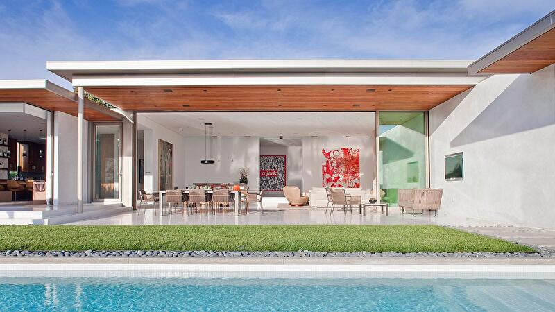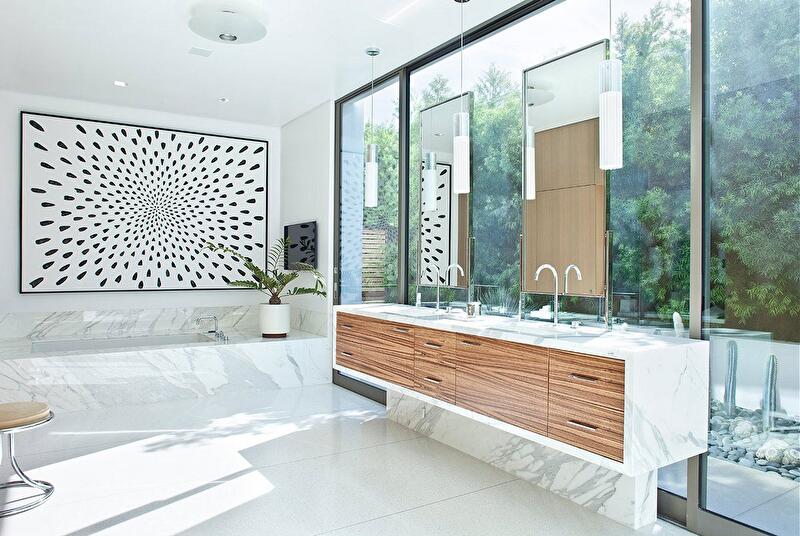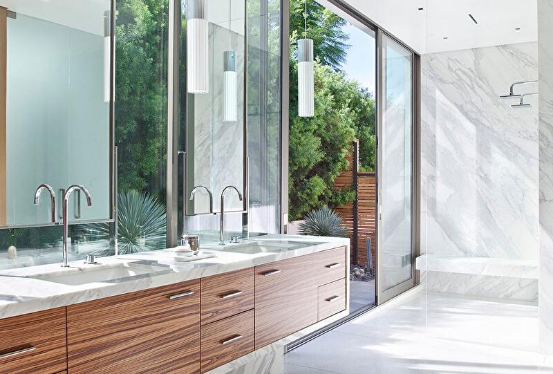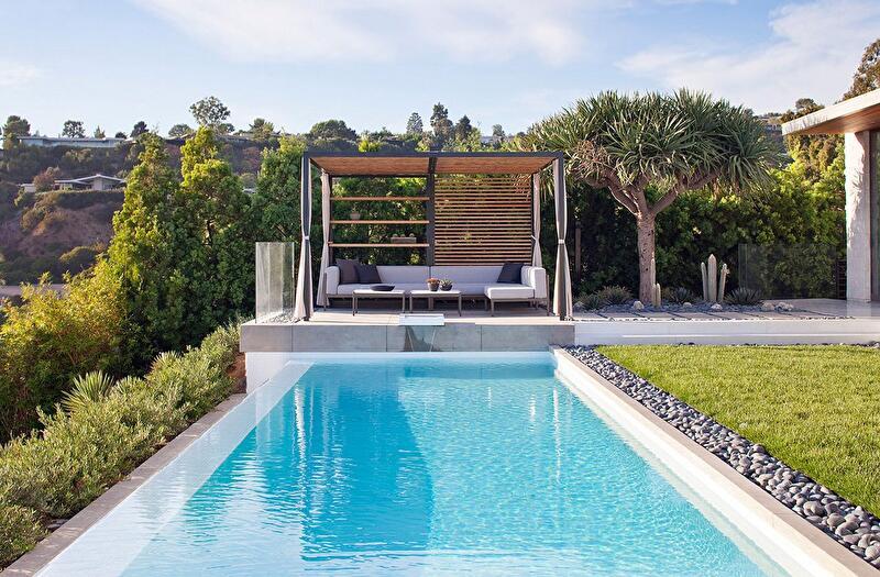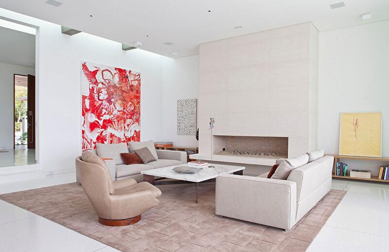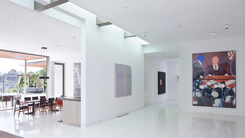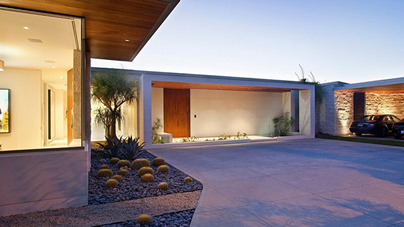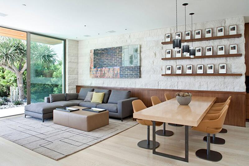 Одноэтажный дом может похвастать современным интерьером и эргономикой внутреннего пространства. Как и у других домов Беверли Хиллз, у Trousdale Residence самое большое преимущество заключается в его расположении на склоне холма, с которого виден Голливуд и часть Лос-Анджелеса. Концепция дизайна интерьера построена вокруг террасы с обратной стороны — в этой части дом имеет максимально открытые стены и открытую планировку интерьера. С обратной же стороны все наоборот, все скрыто от любопытных глаз, только паркинг и входная дверь. На террасе расположен бассейн с парой шезлонгов и крохотный кусочек газона, однако плотная интеграция с интерьером дома расширила это пространство, стерев визуальную границу. В Trousdale Residence пожалуй лучшая спальная комната которая только может быть — потрясающий вид, камин, и пара метров до бассейна, в который так и хочется рухнуть утром, едва встав с кровати.