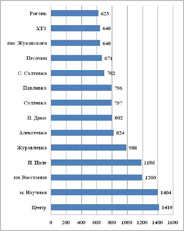 Рисунок 1. - Ценовые показатели в районах г.Харькова, апрель 2013 г. ($/кв.м.)