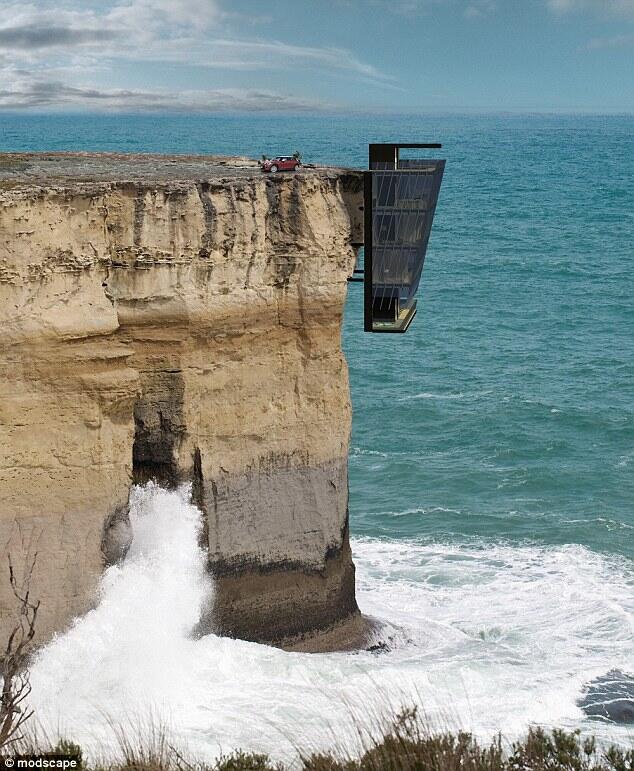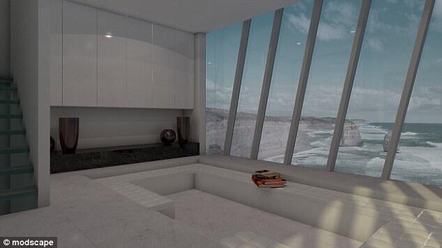 Жильцы войдут в здание на вершине скалы, а в спальню, кухню или гостиную будут спускаться на лифте или с помощью лестницы. Пол нижнего этажа дома будет выполнен из стеклянных панелей, чтобы создать иллюзию открытого пространства, нависающего над океаном.