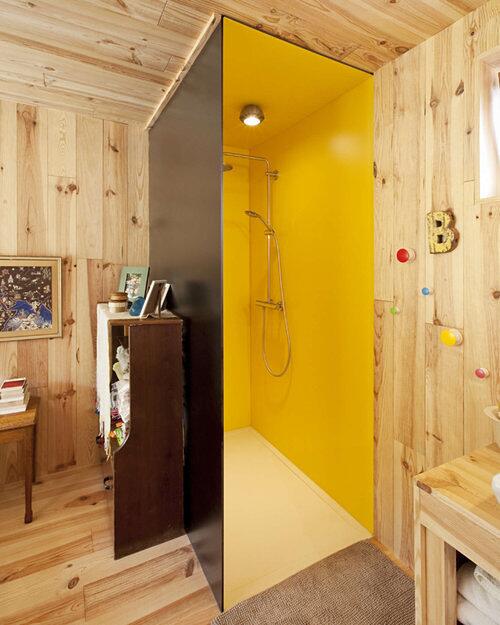 В доме есть все удобства, а яркое решение душевой кабины не только украшает пространство, но и дает цветовой акцент.