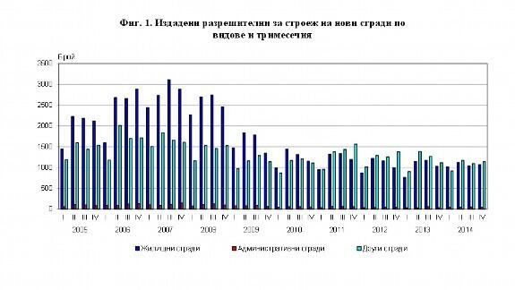 В четвертом квартале 2014 года по сравнению с этим же кварталом 2013 количество выданных разрешений на строительство жилых зданий в Болгарии увеличилось на 3.7%, показывают данные Национального института статистики (НСИ).