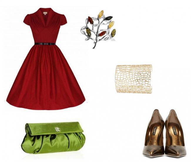 Силуэт «песочные часы» – самый редкий тип фигуры, характеризующийся симметричными пропорциями и равными объемами в области груди и бедер, а также тонкой талией. Чтобы еще больше подчеркнуть эту идеальность, рекомендую выбрать ретро-вариант – платье, напоминающее по форме букву Х. Его можно дополнить стильными аксессуарами: шелковым клатчем, изысканным широким браслетом и брошью в форме веточки, красивыми туфельками, например, золотисто-шоколадного цвета.