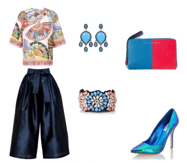 Второй вариант подойдет девушкам и женщинам с типом фигуры «груша». Для того, чтобы сбалансировать эту фигуру, рекомендую собрать комплект из широких однотонных брюк и яркого верха, например, блузы с японскими мотивами в рисунке. Эта блуза привлечет основное внимание. Брюки данного фасона назваются кюлоты – это модная тенденция последних сезонов. Благодаря свободному облеганию, они очень комфортные и женственные.