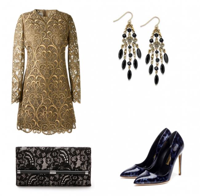 Четвертый вариант подойдет высоким дамам с типом фигуры «банан». Благодаря модельному росту и стройности они могут позволить себе надеть двухслойное платье с кружевным шитьем. Такое платье уже само является украшением, поэтому следует быть осторожной с аксессуарами. Лучше всего дополнить образ элегантными серьгами в викторианском стиле, лаковыми «лодочками» и клатчем с кружевным верхом, который отлично поддержит по стилю платье.