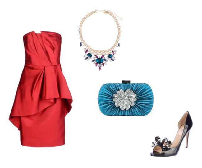 И последний, пятый вариант, для девушек и женщин с типом фигуры «перевернутый треугольник». Фасон однотонного платья-бюстье станет замечательной оправой для красивой линии груди. Благодаря отсутствию ткани в области плеч, широкие плечи останутся незаметными в таком наряде. Широкая баска, плавно спускающаяся от талии, добавит женственности бедрам. Такой комплект отлично дополнят изысканные аксессуары, например, клатч с цветком и лодочки с французским мысом. И конечно, чтобы не выглядеть в таком наряде чересчур обнаженной, рекомендую украсить область декольте эффектным колье.