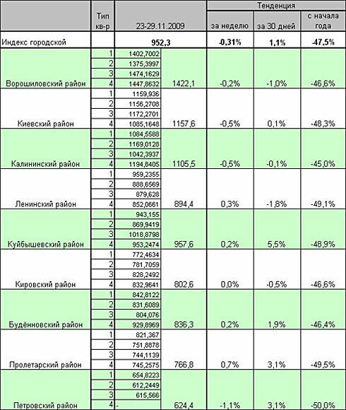 Ворошиловский район - рост 5,29% (на $69) до $1 373/кв.м.;