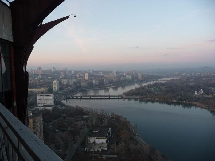 Риэлтор особенно акцентировал внимание на том, что это самое высокое здание в Донецке, будто бы это и есть главное преимущество данного пентхауса. Апартаменты продаются без ремонта — одни голые стены. Кирпичная высотка построена в 2008 году. Для владельцев пентхауса есть личный лифт, дом охраняется, предоставляют два места в подземном паркинге. Сам дом расположен в парковой зоне, а из квартиры, в который выполнено панорамное остекление, открывается чудесный вид на Кальмиусское водохранилище и стадион «Донбасс-Арена».