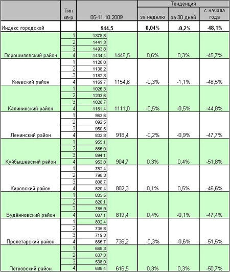 Напомним, что состоянием на 04 октября средняя продажная стоимость вторичного жилья в Донецке составляла $944 за квадратный метр. В центральных районах города квартиры сбрасывали цены, в то же время недвижимость в спальных районах пошла в рост.