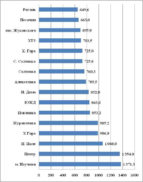 Рисунок 12 - Ценовые показатели в районах г.Харькова, июль 2013 г. ($/кв.м.)