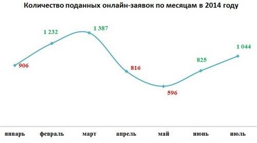 "Стоит отметить, что такой спрос является сезонным - у населения увеличивается потребность в деньгах в период отпусков, многие делают ремонты в теплый период года. Именно июль стал пиковым по числу онлайн-заявок в 2013 году. Однако показатель июля этого года не стал лучшим в 2014 году, причины спада спроса на банковские продукты всем нам известны", - комментирует Леонид Красавцев, генеральный директор компании "Простобанк Консалтинг".