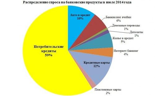 Благодаря значительному повышению количества онлайн-заявок, поданных по получение потребительских кредитов в банках через "Простобанк Онлайн", доля потребкредитов в общей сумме поданных заявок увеличилось до 59% с 48% в июне и 54% в среднем в 2013 году. Заметно снизилась доля кредитных карт - до 12% с 17% в июне и 21% в 2013 году. При этом выросла доля автокредитов - до 10% с 9% в прошлом месяце и 7% в 2013 году.