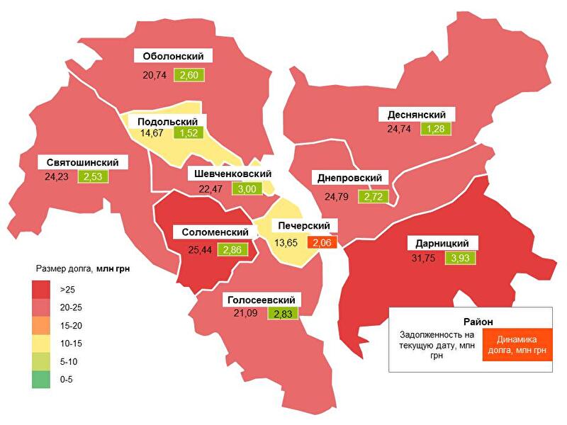 Самыми крупными должниками перед ПАО «Киевэнерго» стали потребители Дарницкого, Соломенского и Днепровского районов. Их совокупная задолженность по состоянию на 1 сентября составила 31,8; 25,4 и 24,8 млн грн соответственно.