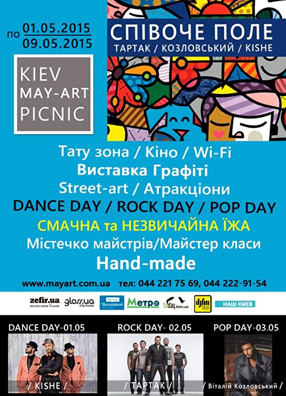 С 1 по 9 мая в Киеве на «Певчем поле» пройдет грандиозный Kiev May-Art Picnic – единственный в городе масштабный open-air фестиваль в первую неделю мая!