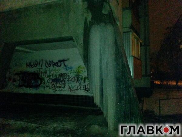 В Киеве на Русановке обнаружены гигантские сосульки. Фото