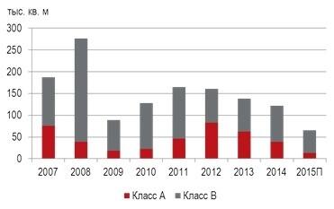 И хотя начиная со второго полугодия 2014 г. наблюдалось постепенное оживление спроса на рынке и увеличение количества компаний, готовых рассматривать переезд и расширение, по итогам прошлого года общий уровень вакантности достиг 23,2%. (в классе В — 19,8%, в классе А — 33,6%), тогда как по результатам 2013 г. он составлял лишь 15,1%.