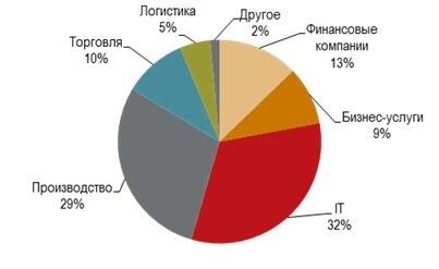 В отраслевом разрезе структура спроса не изменилась. Среди арендаторов лидируют компании сферы информационных технологий, консалтинговые компании (юридические, страховые, коллекторские и т.д.), ритейл сектор, промышленность, фармацевтическая сфера. При этом отмечается постепенный рост активности со стороны IT-сектора и постепенное снижение интереса производственных компаний.
