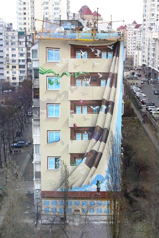 В Киеве создали самое большое в Украине реалистичное трехмерное изображение на торце жилого дома