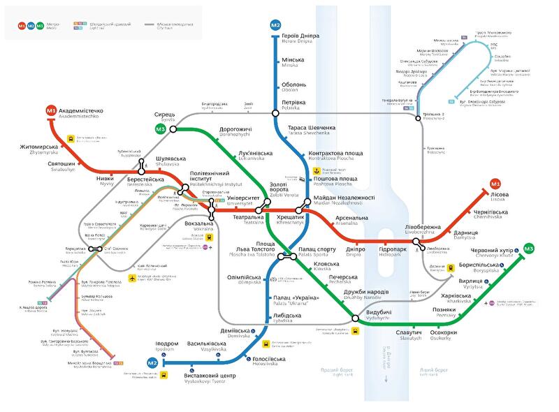 На новой схеме названия станций будут изображены крупно, пересадочные узлы, по словам дизайнера, станут более четкими. Также со схемы исчезнут названия станций-долгостроев — "Львовская брама" и "Теличка" — если станции достроят, схемы поменяют. "На обновленной схеме появятся линии киевских скоростных трамваев — Троещинский и Борщаговский — и городской электрички. Появятся также обозначения: левый и правый берега, чтобы людям было понятнее, куда они направляются. Также мы четче прорисуем реку Днепр и покажем, что станция "Гидропарк" находится на суше, а не в воде, как это было на схеме раньше. Также на карте будут указаны места, где находятся фуникулер, аэропорт " Киев " и крупные автовокзалы. Сама карта будет крепиться не на стекло в вагоне, как раньше, а на стену возле входной двери", — рассказал нам дизайнер.