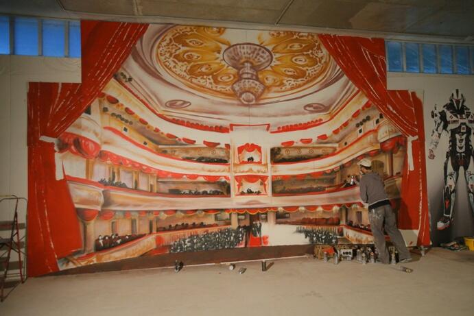 По его словам, над созданием панно работает семь художников, в нем будет использовано 50 оттенков краски.
