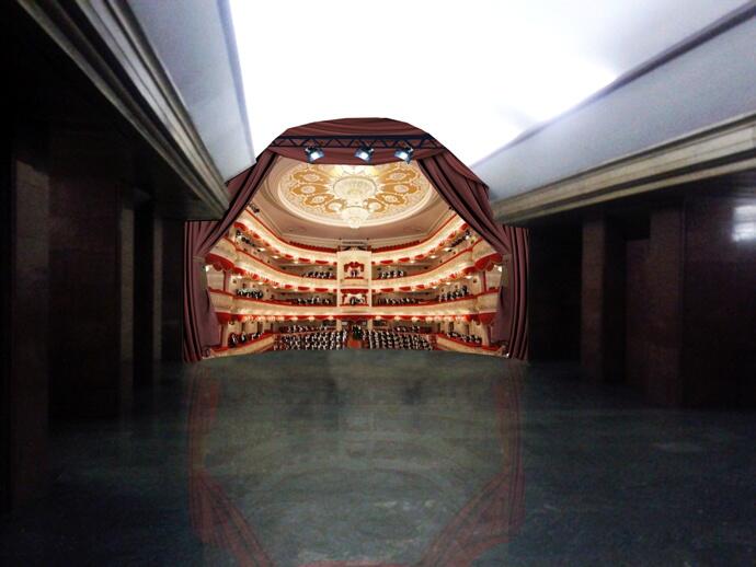 ТЕАТР НА "ТЕАТРАЛЬНОЙ". Преобразится и станция метро "Театральная". Шеститонный барельеф Ленина, который находится в торце станции и сейчас прикрыт фанерой, закроют огромным панно площадью 50 кв. м, на котором изобразят театральный зал со зрителями в формате 3D.