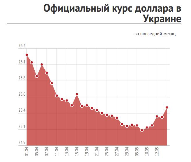 Напомним, в пятницу, 13 мая, курс доллара на межбанке вырос. Торги закрылиcь котировками 25,42 – 25,49 грн/долл.