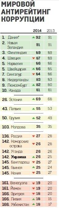 В Transparency пояснили: рейтинг инерционный, учитывает исследования восьми международных организаций, которые проводились в том числе во время Майдана: Freedom Housе, например, снял с Украины 3 балла за несоблюдение прав активистов и «узурпацию власти». Однако главные показатели, например, по свободе бизнеса, скорее ухудшились. «Предприниматели жалуются на регуляторов: стали брать больше. Особенно на уровне местной власти — проверяющие, СБУ, прокуратура создают предпосылки для коррупции, — рассказала «Вестям» Анна Деревянко, исполнительный директор Европейской Бизнес Ассоциации. — Некоторым приходится реструктуризировать, закрывать бизнес, выводить капиталы в спокойную гавань.