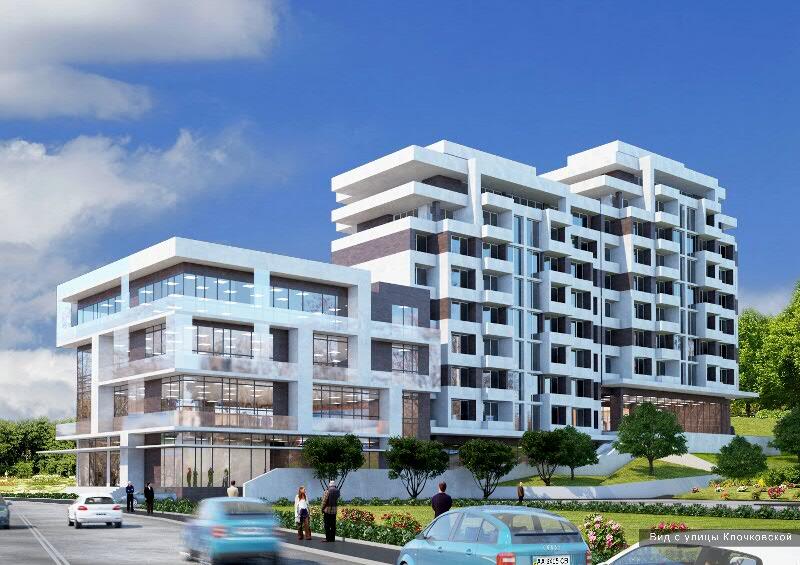 Жилой комплекс состоит из двух разных по назначению, но композиционно объединенных архитектурных объемов. Первый из них представляет собой 4-этажное торгово-офисное здание (секция А). Второй – двухсекционное 9-этажное жилое здание террасного типа с понижением этажности в сторону улицы Клочковской (секции Б и В). Оба здания с оригинальной архитектурной стилистикой фасадов органично вписываются в окружающую застройку. Рядом с жилым комплексом расположены остановки общественного транспорта.