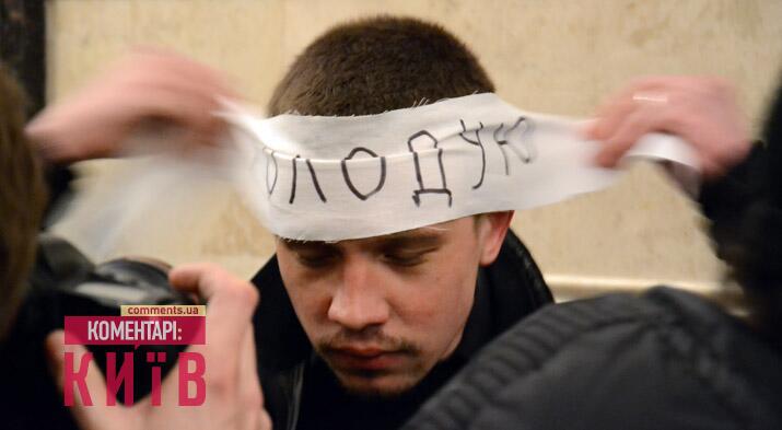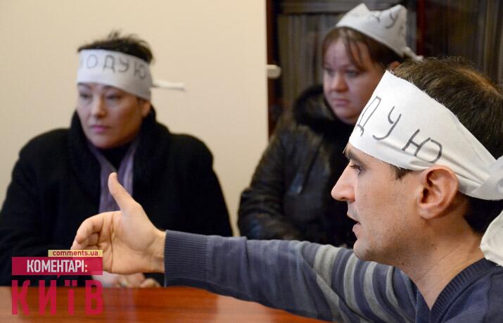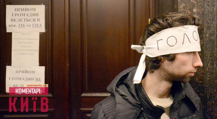 Они надели на себя ленты «Голодаю» и заняли холл здания, передает «Киев. Комментарии».