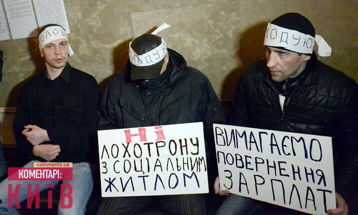 В помещение Киевской городской государственной администрации 7 строителей соцжилья на Троещине начали бессрочную голодовку, требуя выплаты зарплаты.