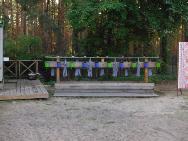 Эта стоянка — прекрасное место для тех, кто пока не готов расстаться с комфортом на природе: оборудованный кемпинг, столы и лавки под навесом, полевая кухня, рукомойники и душевые кабины. Более того, здесь есть даже музей! Отдыхая от долгого пути, можно осмотреть образцы военной техники времен второй мировой под открытым небом. А тем, кто был в велопоходе на прошлых выходных, повезло услышать еще и хор украинской песни «Співоче полісся».