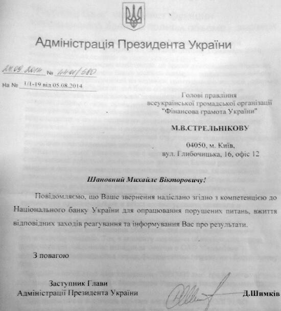 Мы как общественная организация обращались в Администрацию президента с просьбой решить вопрос "Родовода". В сентябре из АП в Нацбанк пришла бумага с просьбой разобраться. До сих пор этой бумагой в НБУ еще никто не занимался.