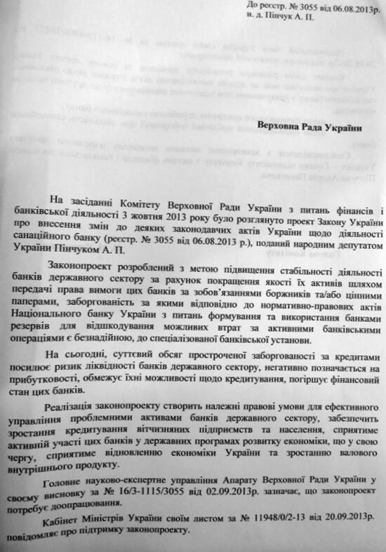 Таких законопроектов за время существования санационного банка было несколько. Один подавал Кабмин, парламент его отклонил. Второй внес народный депутат Андрей Пинчук. Судьба этого законопроекта оригинальна.