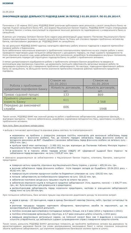 Естественно, я посмотрел, о чем же написал банк. Это редкая ситуация, когда ты можешь посмотреть, о чем он пишет. Обычно "Родовид" никаких пресс-релизов не писал, это был достаточно закрытый банк. Что он ставит себе в заслугу?